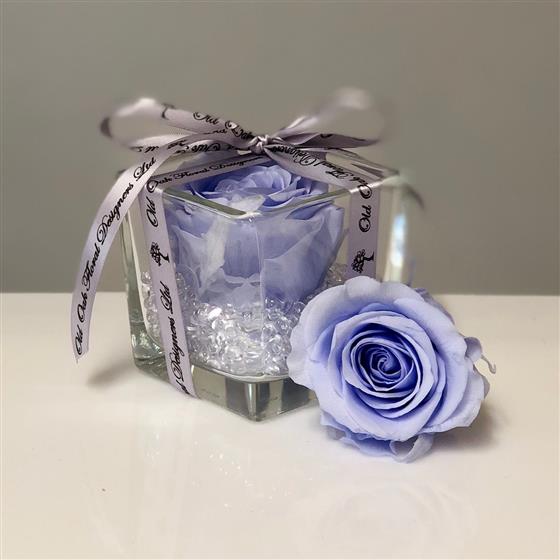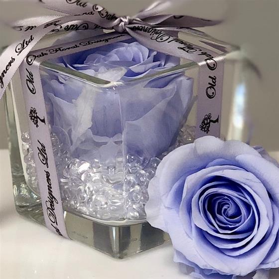 This real rose has been preserved with silicon which means it can be admired for a long time, it has the look and feel of a fresh rose and is far superior to a silk or artificial. The rose come beautifully displayed in a glass cube that 8cm x 8cm x 8am and wrapped in our luxury printed ribbon.