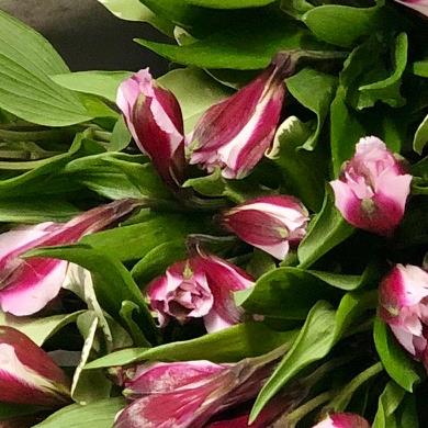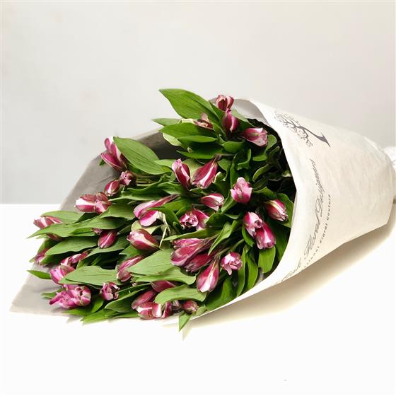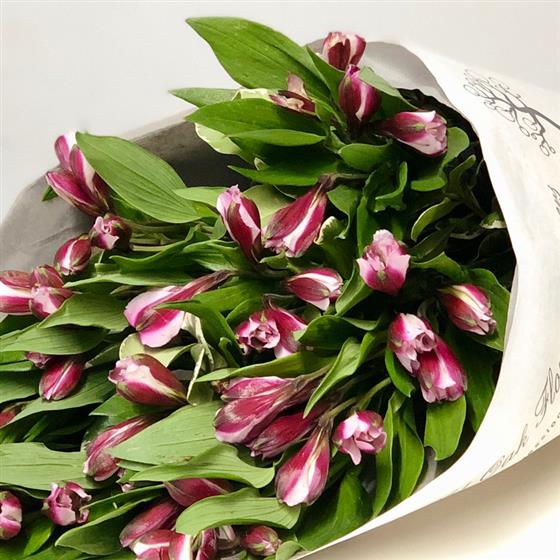 A gift wrap of long stemmed Pink Alstroemeria's. Wrapped in 100% Biodegradable paper and tissue.