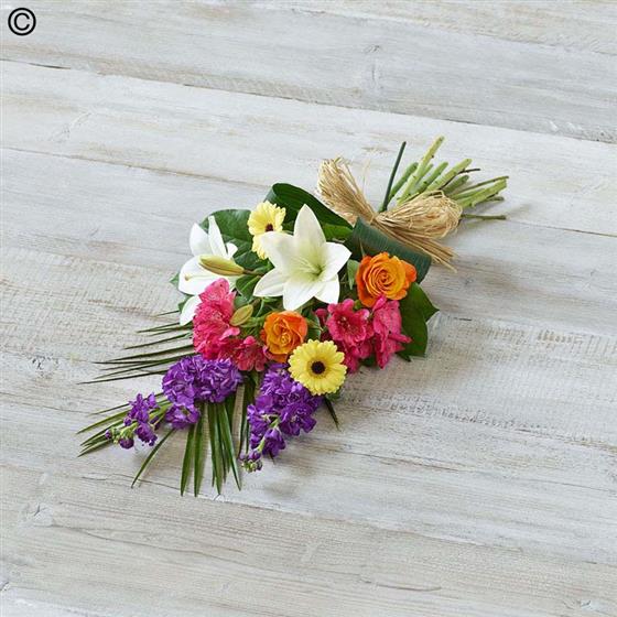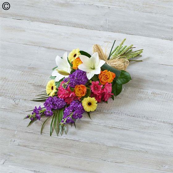 A bright, beautiful and fragrant combination of lilies, roses and stocks. Also featuring alstroemeria and aspidistra.